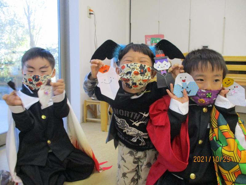 *今日はハロウィンでした。 みんな朝からワクワク(^^♪ 園では輪投げゲームしたり、魚釣りやボーリングしたりして楽しみました(#^^#) 園長先生が魔女に扮してお友だちにお菓子のプレゼントみんな大興奮でした(^^♪
