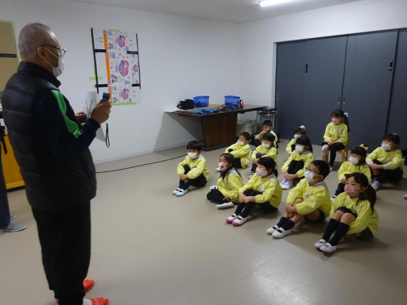 園では今年度最後の避難訓練を行い、年長児は震災の事を知らなかったので園長から避難訓練後