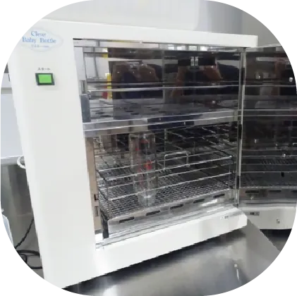 哺乳瓶やおもちゃは専用機器で殺菌し清潔を保っています。下痢や嘔吐時は専用処理で感染拡大を防いでいます。光触媒空気洗浄機や大型空気清浄機も設置しています。