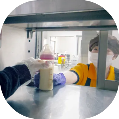 お子様に合わせた時間で調乳や離乳食を提供しております。乳児室と厨房は直結しており、調乳や離乳食を直接受け渡すことができます。
