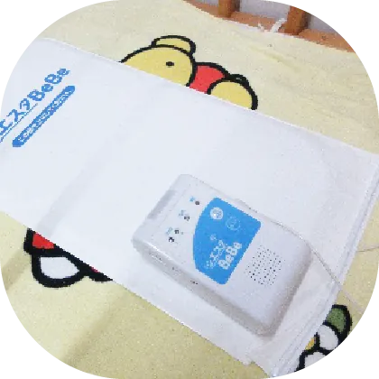 午睡中のSIDSを防ぐ為に、0歳は5分間隔、1歳は10分間隔で呼吸、顔色の確認をしています。心拍、呼吸に異常があった際はブザーで知らせるシステム(シエスタBeBe)も導入しています。