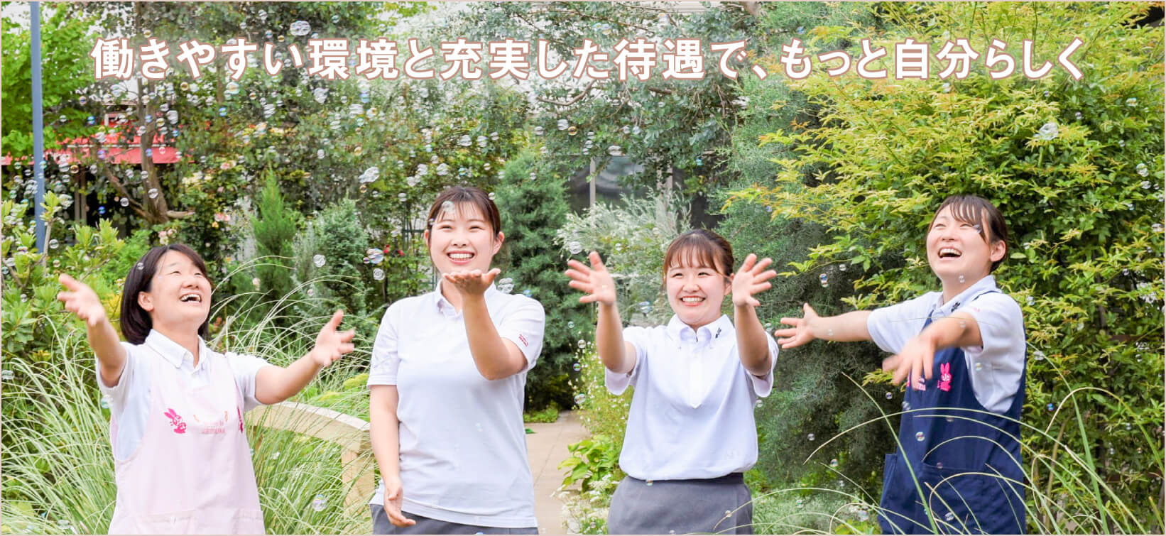 世良田の杜は休暇をとりやすいので、自分の時間をつくりやすいです。土曜日出勤や休日出勤をした場合は翌週に必ず休みがとれますし、夏休みもしっかりとれます。旅行をしたり美容室に行ったり、リフレッシュできる機会がたくさんあり、嬉しいです。こうした休暇があるからこそ、"常に笑顔"のコミュニケーションを心がけることができているのではないかと思います。